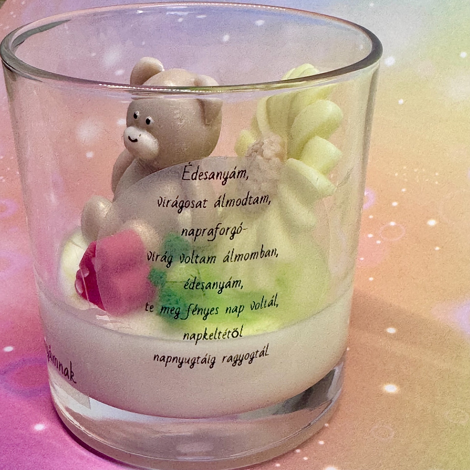 Anyák napja alkalmából készítettem ezt a kedves macis gyertyát, melyen az alábbi idézet található: