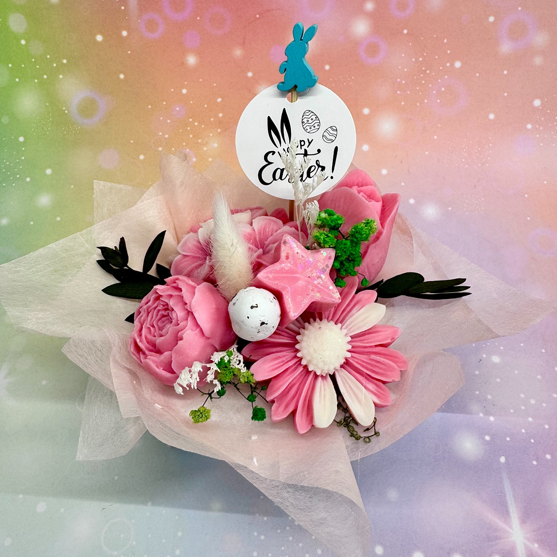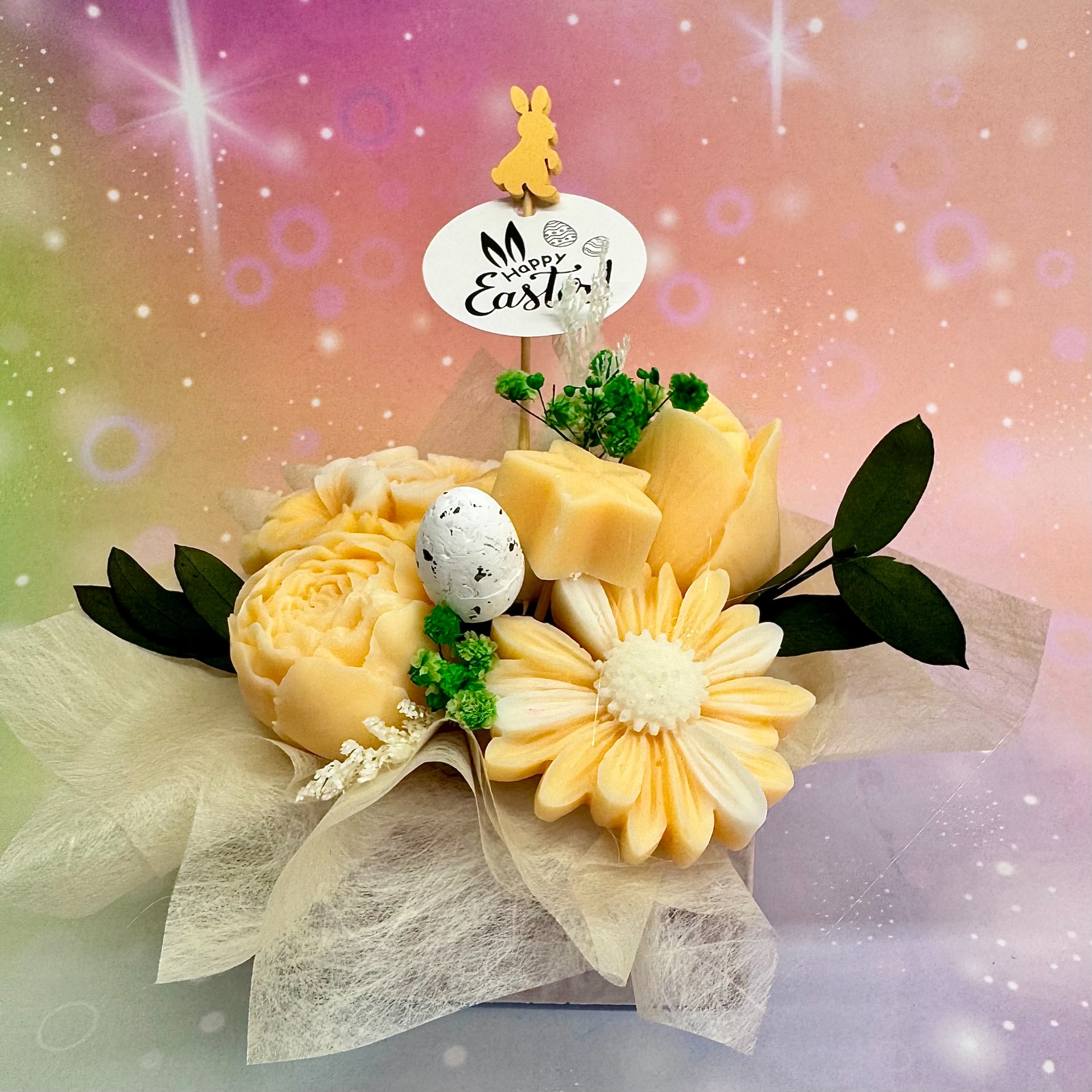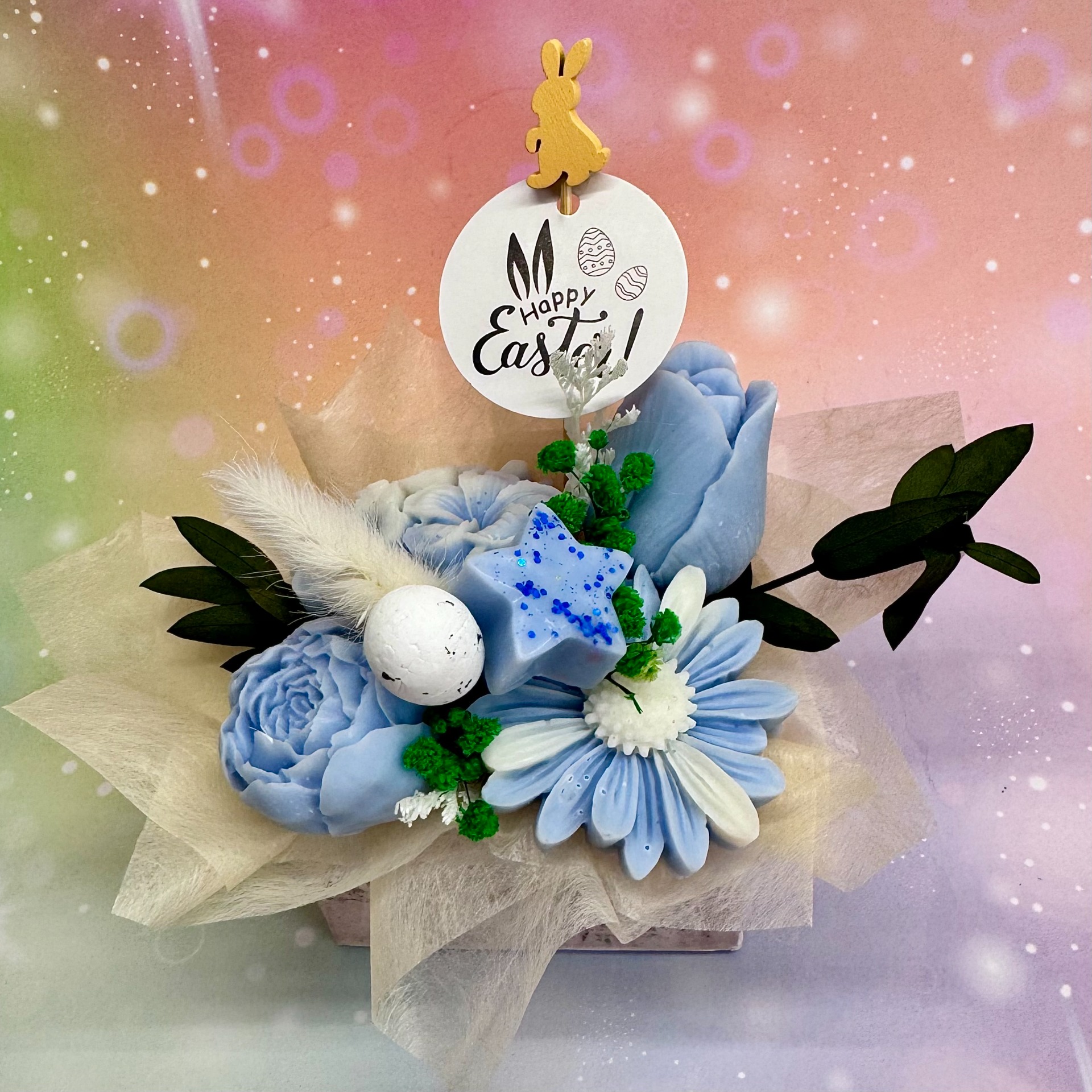 Parfüm illatú gyertya, és kerámiaporból készült kaspóban , szárított virággal díszítve.